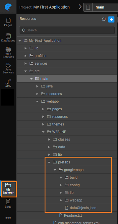 • webapp - contains the pages comprising the Prefab and any resources imported