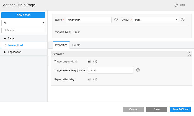3. A Variable that gives Facebook-like feeds after a certain timestamp. Assign Javascript to the onTimerFire event and write following logic. Once the Timer Action is triggered, if repeating property is set, then the variable will be invoked after every delay milliseconds.