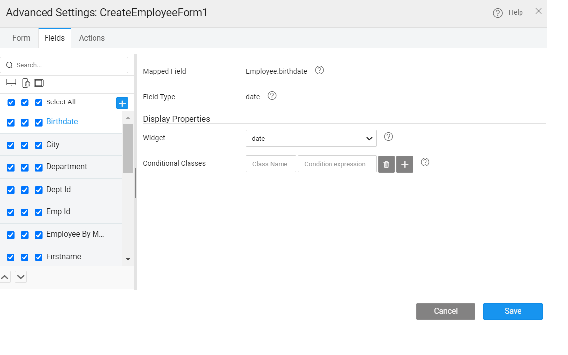 Configure form fields display options