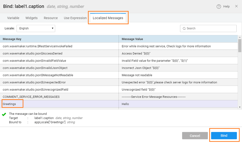 Captionor any other relevant property to any of the application messages of the project. Once you have bound all the relevant widgets to the messages, you should enable the application to show the message based on the user's locale.