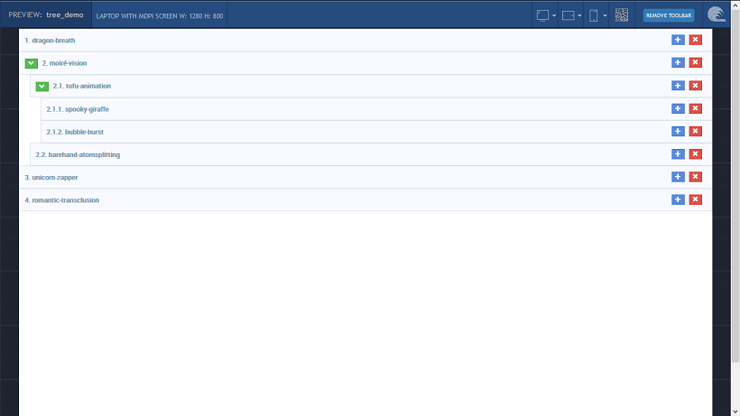 1. You can bind the prefab list property to any list and change the tree structure. We have created a static variable with the following structure and bound it to the list property.
