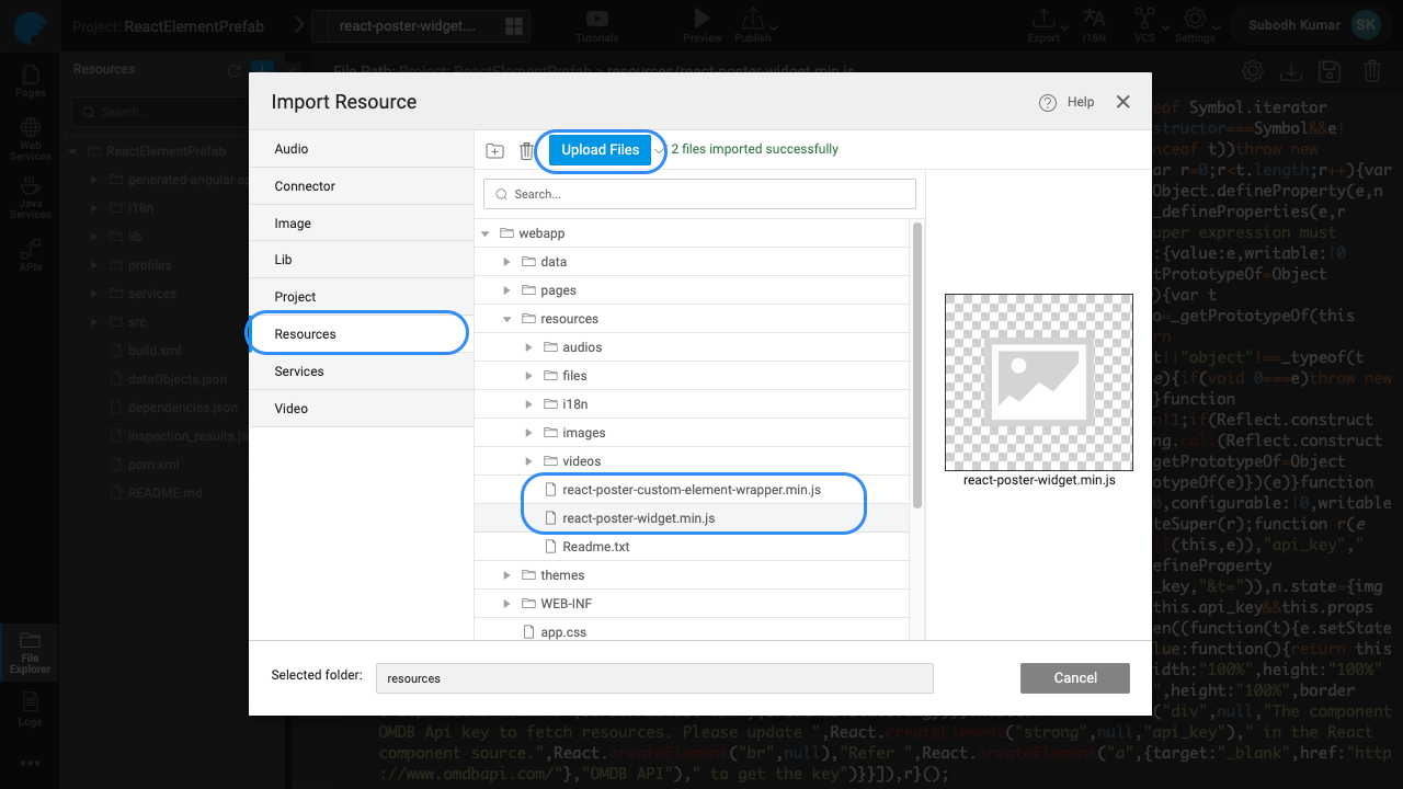 The developers with Angular or React based components can leverage them in the WaveMaker project by exporting them as Web Components & importing through Prefabs.This documentation helps you understand the process with the help of Sample Component(PosterWidget) developed in both React & Angular. The source code is also shared for reference.