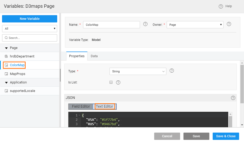 • Bind ColorMaps Variable to the Colormap Property.
