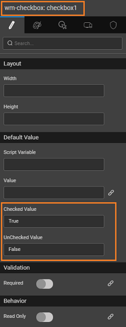 2. For the Checkbox widget, set the checked value and unchecked value as true and false respectively.