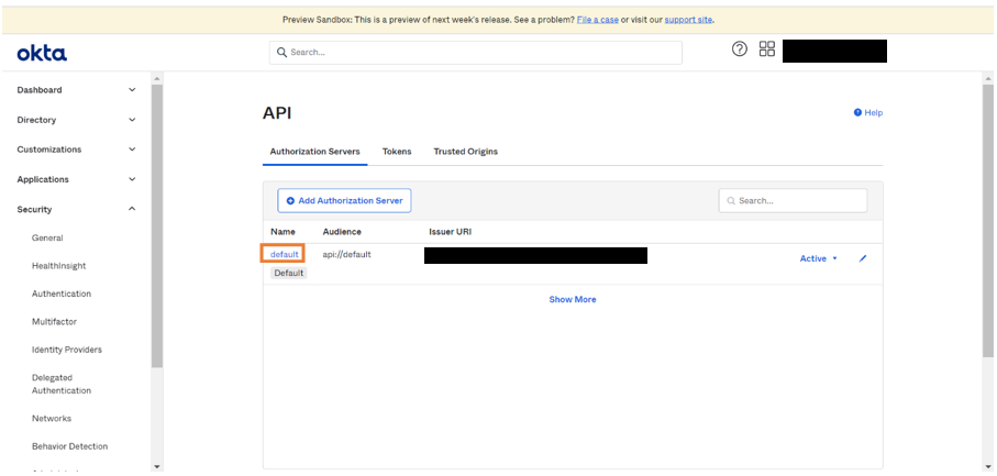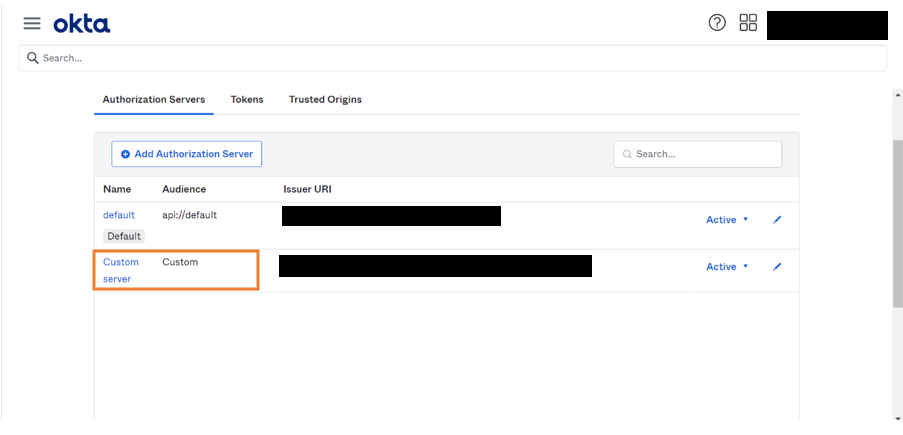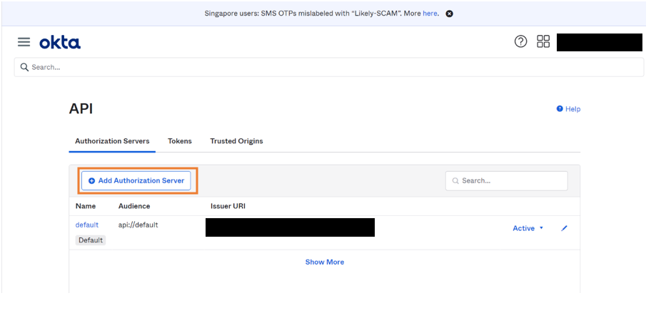 1. Go to Security > API > Add Authorization Server.