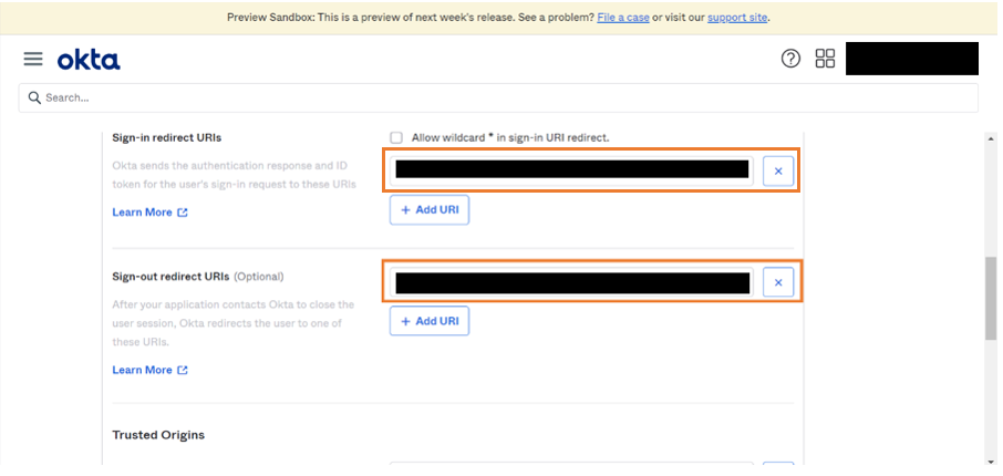 1. Enter sign-in redirect URL and sign-out redirect URL.