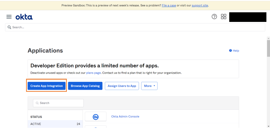 1. Click Create App Integration to start creating an application.