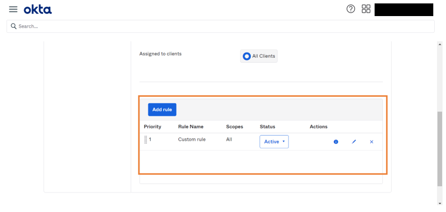 1. Go to Okta API Scopes and click Grant to include it as scope.