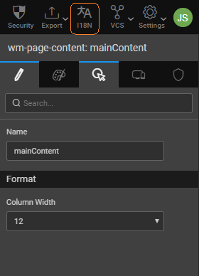 3. Drag and drop a Select Locale widget onto the canvas. The Select Locale widget auto-populates the languages added from the I18N dialog as a drop-down. (more on Select Locale widget)