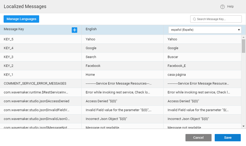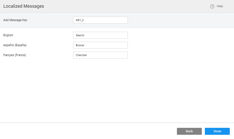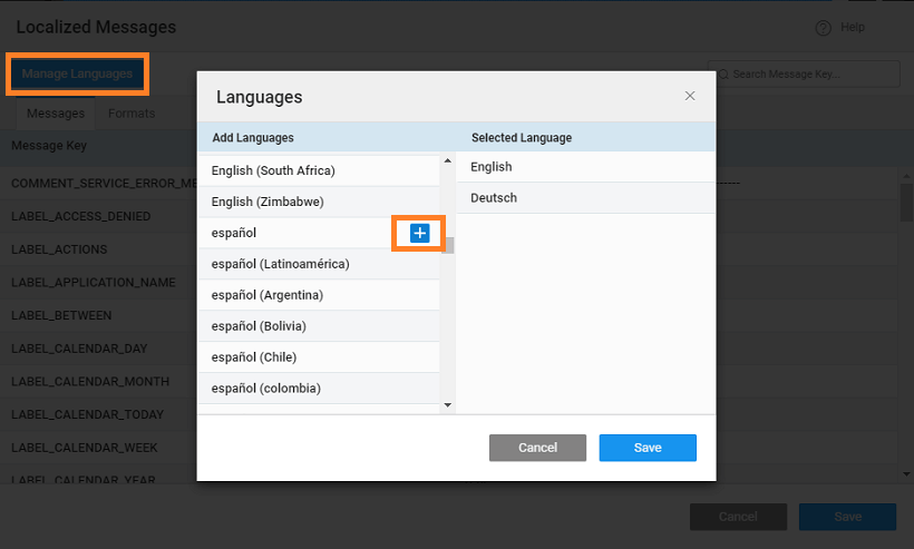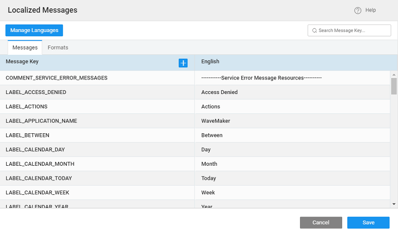 1. Use + sign next to Message Key header to open the Localized Message Dialog.