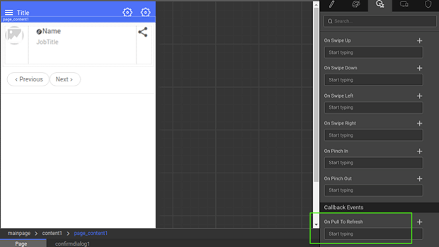 • if the On Pull To Refresh event on pageContent is provided.