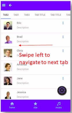 1. Tab content to navigate to the next tab or previous tab on swipe;