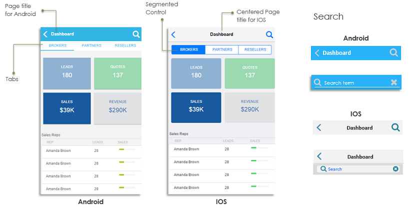 The Mobile Themes give native look-n-feel on the same page based on the Platform (IOS, Android etc.). Most importantly themes adhere to design guidelines of the Platform.