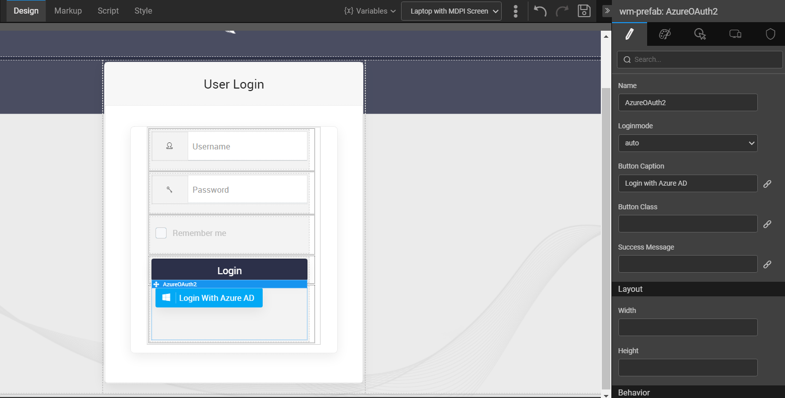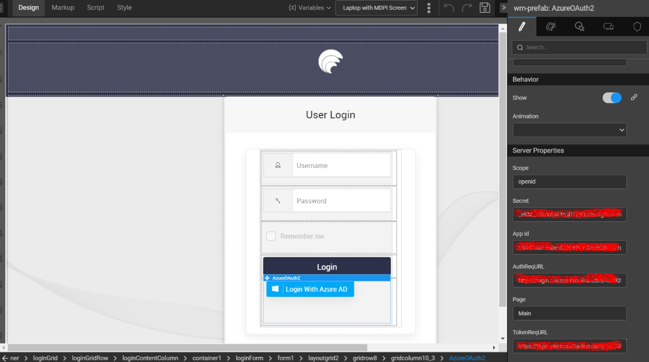 Using Azure OAuth Prefab in WaveMaker