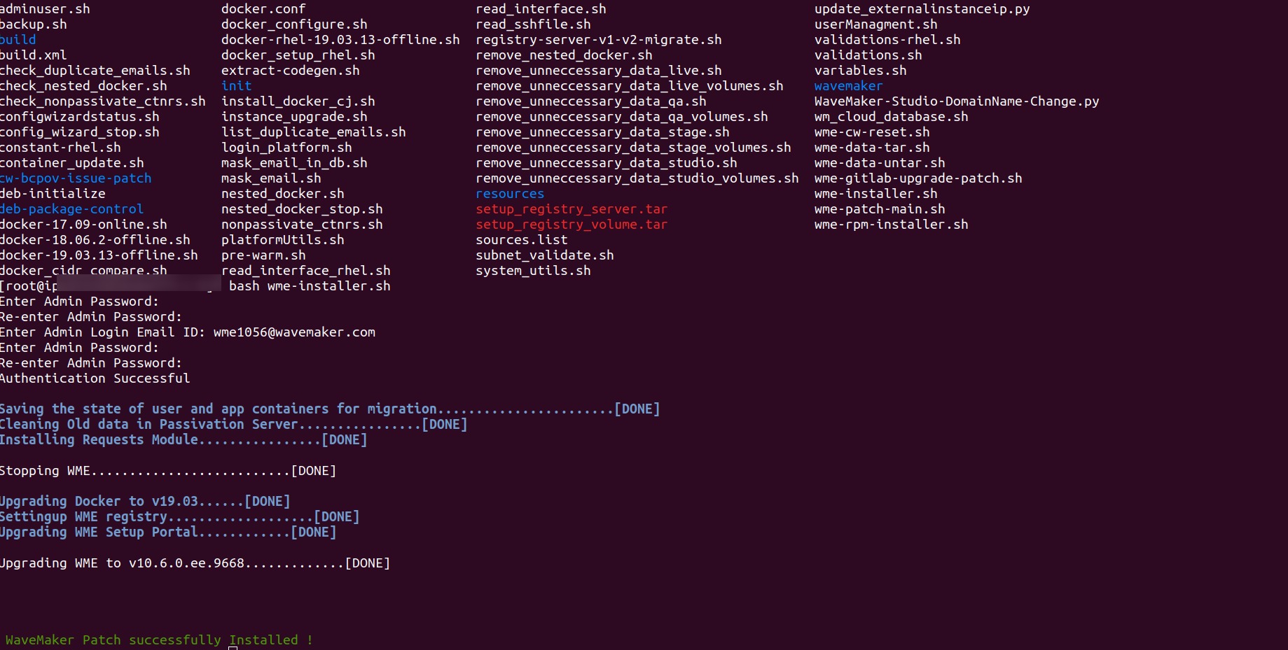 - Extract wme_migrations.tar to /usr/local/content/wme/wme-installer/< version>/resources folder, for extract the content run the following command